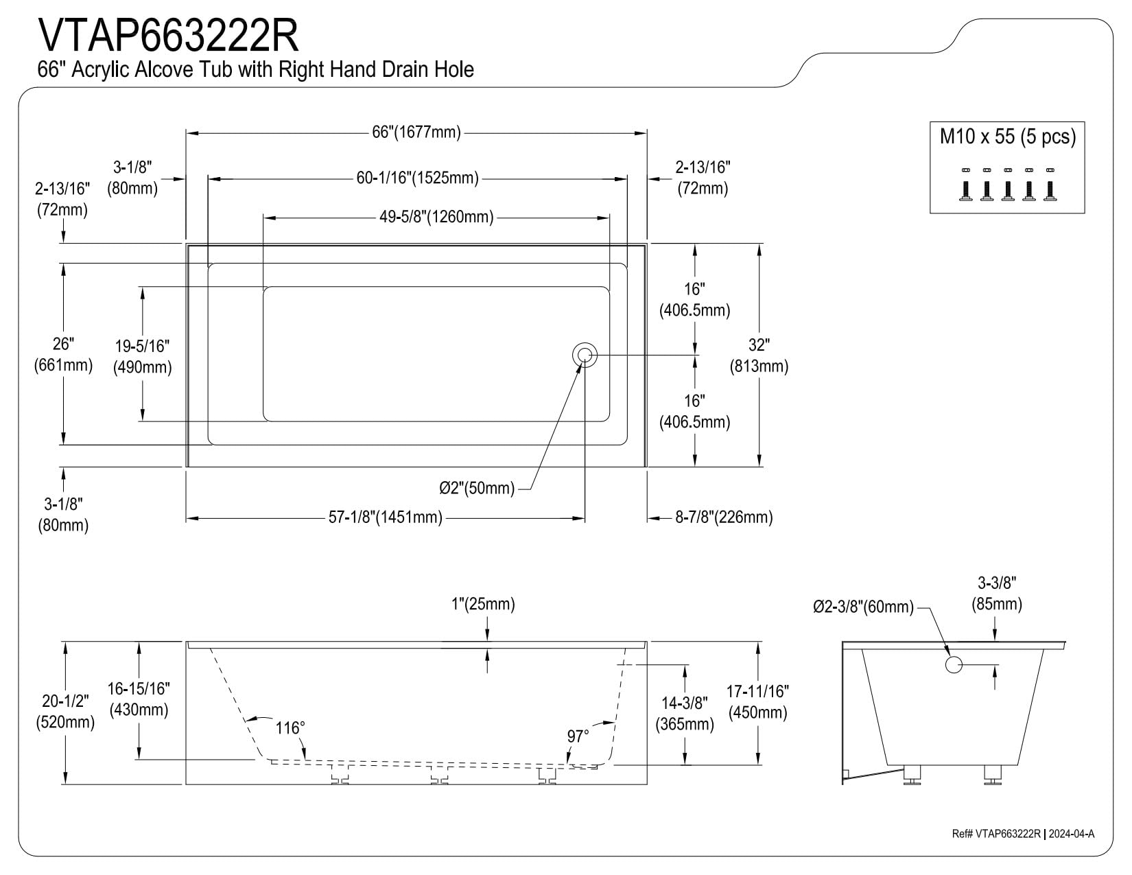 • Alcove tub with apron