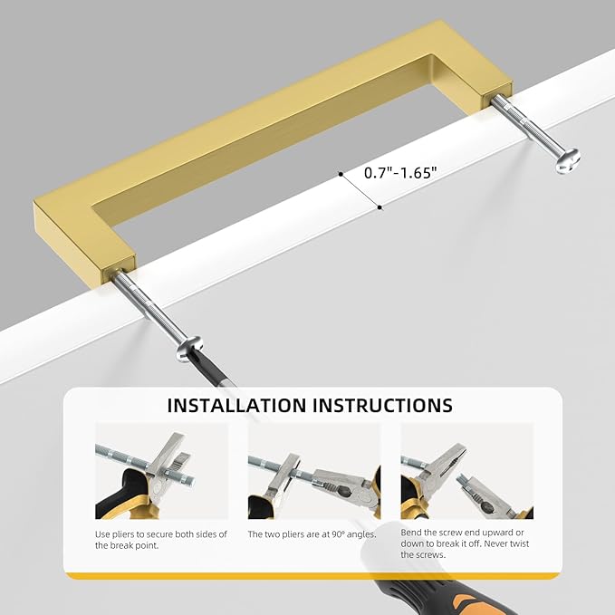 • PACKAGE INCLUDE: Pack of 20 brushed brass cabinet pulls with matched standard screws(1 inch & 1.77 inch).You can select the right size according to the thicknesses of the cabinet.If you need other size screws, please feel free to contact us.