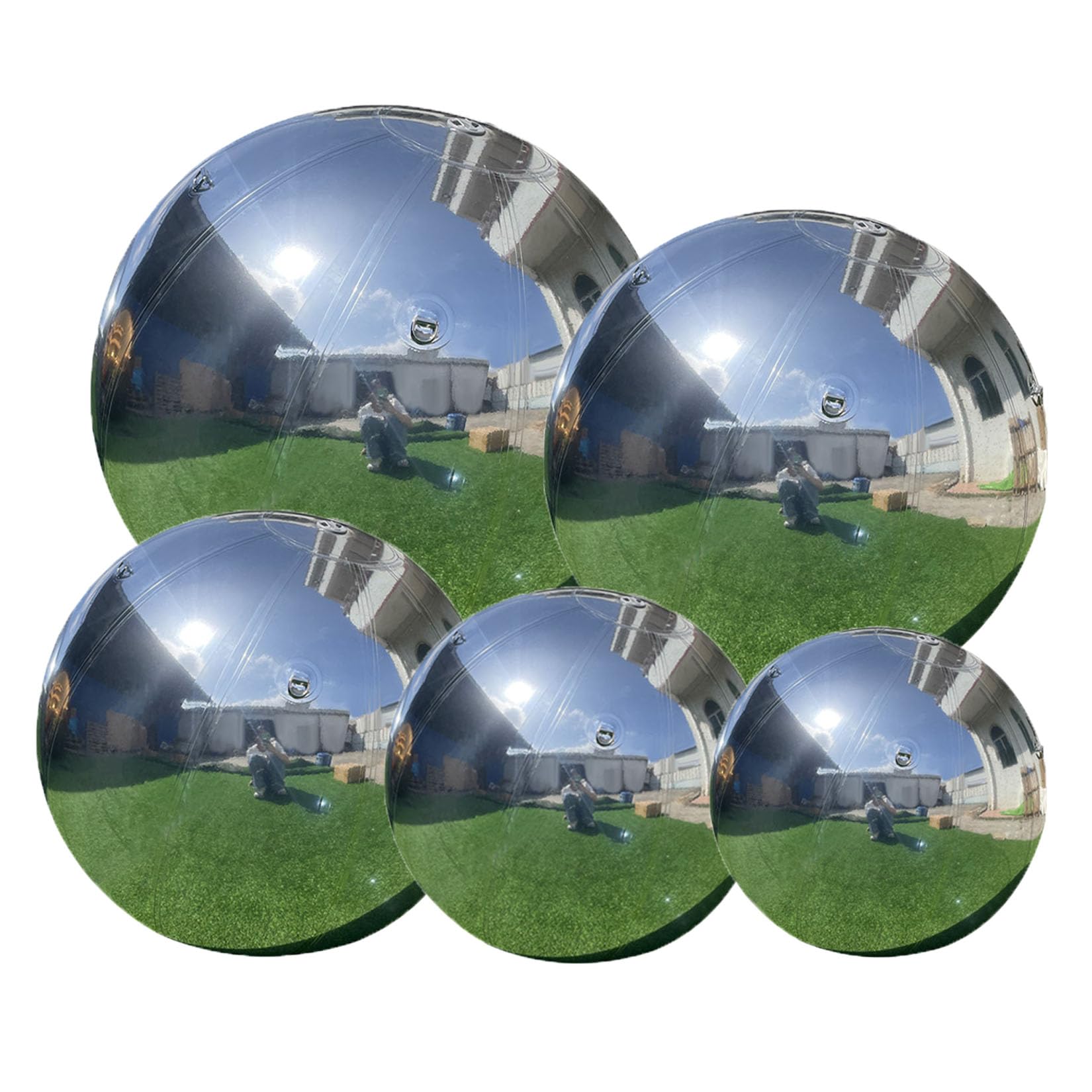 • 🎉【INFLATABLE MIRROR BALL SET】A set of 5pcs big shiny balls (Silver -23.6in/31.4in/39.3in/47.2in/59in)