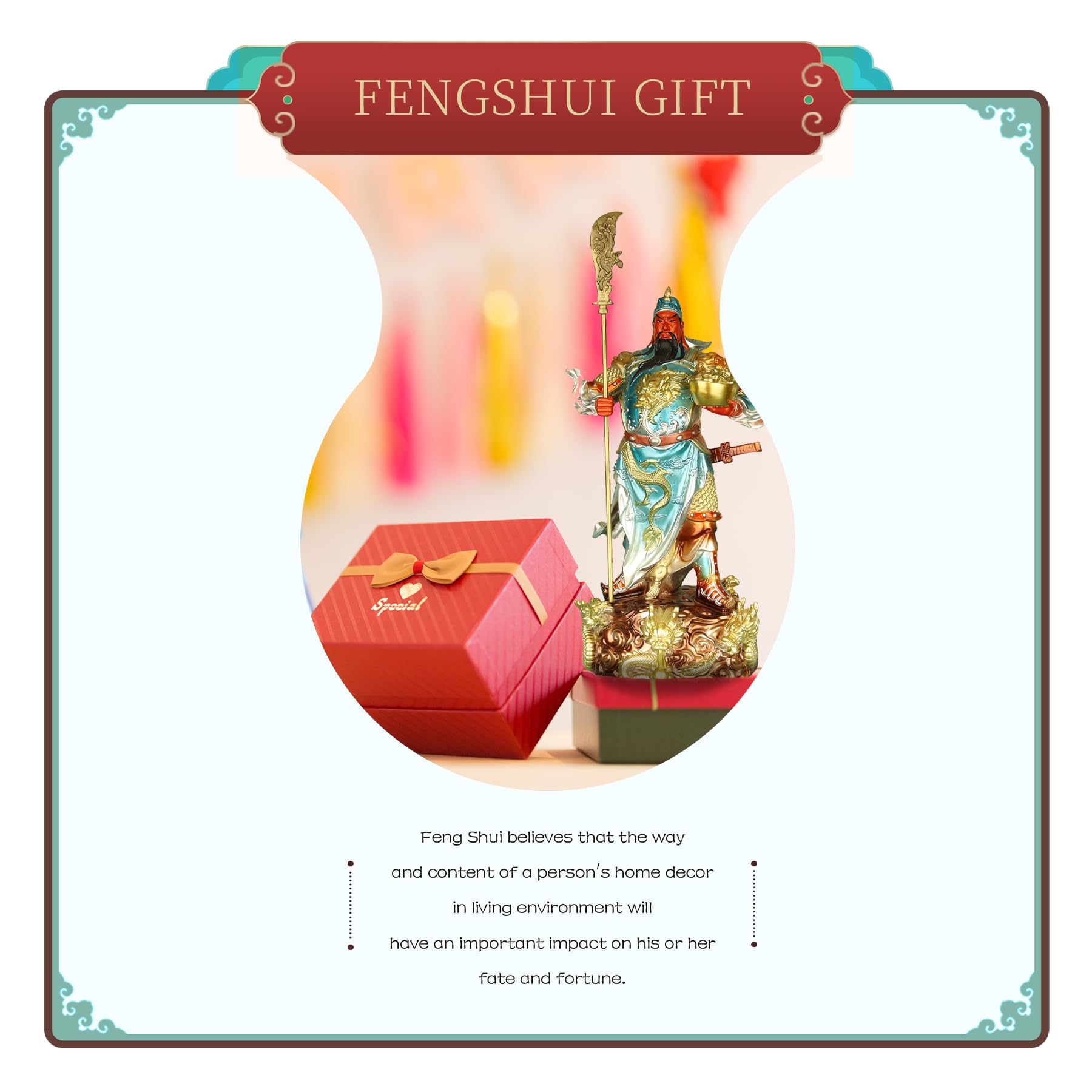 4.✅ 𝐏𝐨𝐰𝐞𝐫 𝐨𝐟 𝐂𝐡𝐚𝐧𝐠𝐞 --- Feng shui is an ancient oriental culture. Feng shui believes that the way and content of a person's home decor in living environment will have an important impact on his or her fate and fortune. 🔮 Guan gong is one of the feng shui gods.